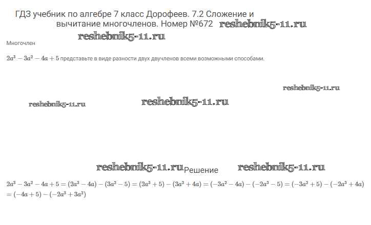 Готовая домашняя работа с ответами по Алгебре за 7 класс Дорофеев, Суворова, Бунимович Учебник Академический школьный учебник Просвещение 2020 ФГОС - Упражнения 672