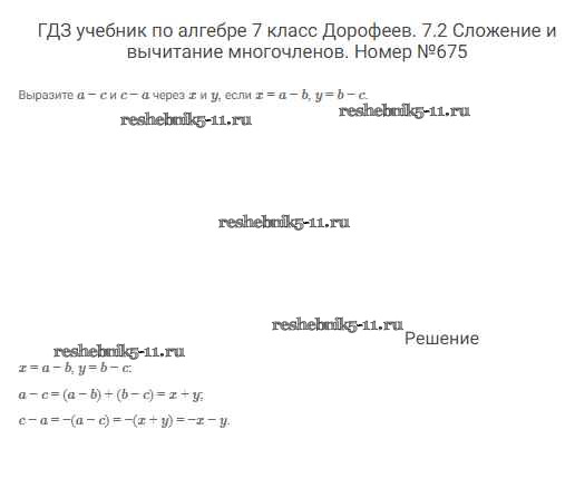 Готовая домашняя работа с ответами по Алгебре за 7 класс Дорофеев, Суворова, Бунимович Учебник Академический школьный учебник Просвещение 2020 ФГОС - Упражнения 675