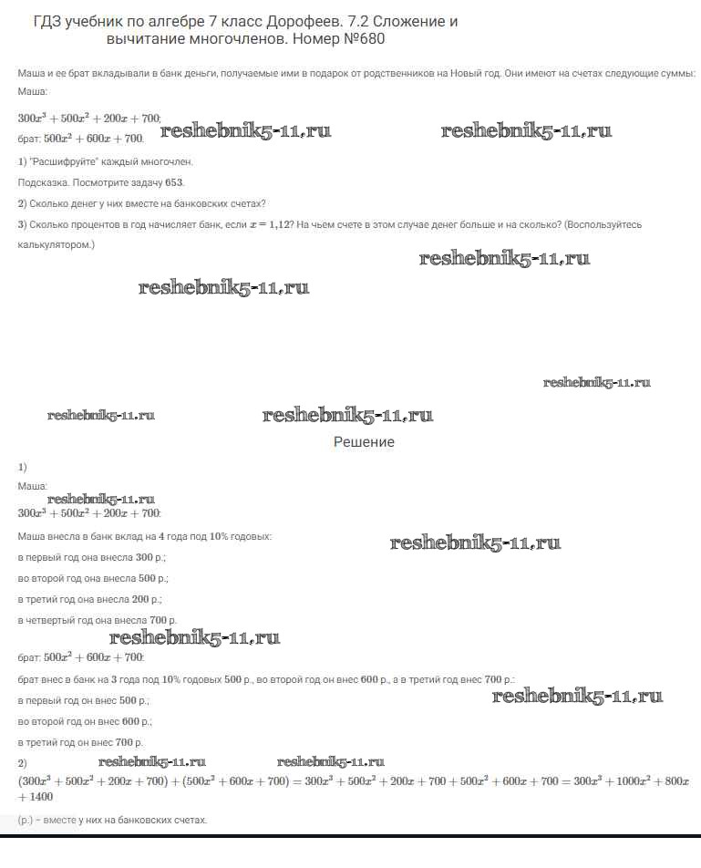 Готовая домашняя работа с ответами по Алгебре за 7 класс Дорофеев, Суворова, Бунимович Учебник Академический школьный учебник Просвещение 2020 ФГОС - Упражнения 680