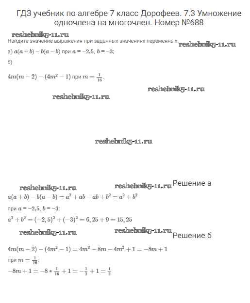 Готовая домашняя работа с ответами по Алгебре за 7 класс Дорофеев, Суворова, Бунимович Учебник Академический школьный учебник Просвещение 2020 ФГОС - Упражнения 688