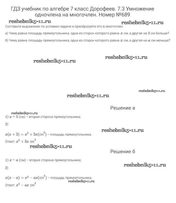 Готовая домашняя работа с ответами по Алгебре за 7 класс Дорофеев, Суворова, Бунимович Учебник Академический школьный учебник Просвещение 2020 ФГОС - Упражнения 689