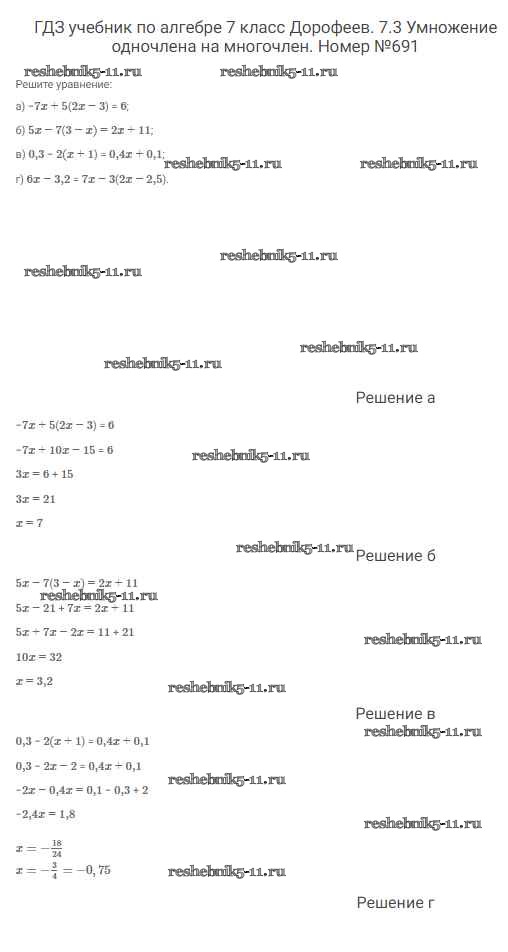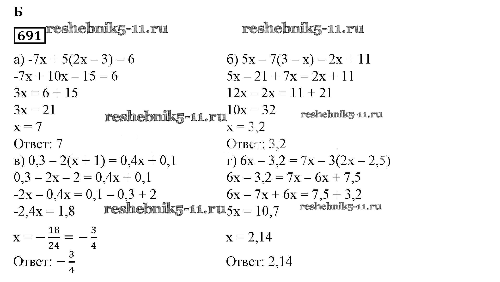 Готовая домашняя работа с ответами по Алгебре за 7 класс Дорофеев, Суворова, Бунимович Учебник Академический школьный учебник Просвещение 2020 ФГОС - Упражнения 691