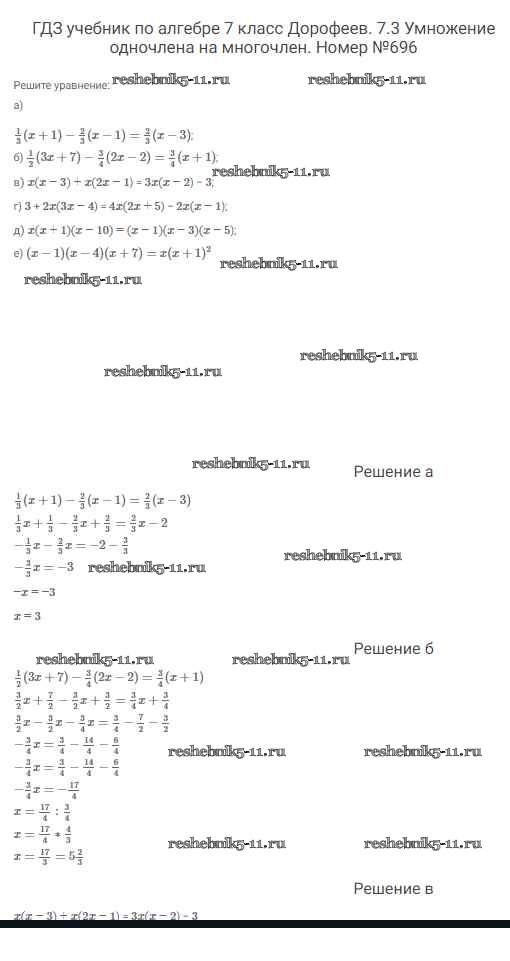 Готовая домашняя работа с ответами по Алгебре за 7 класс Дорофеев, Суворова, Бунимович Учебник Академический школьный учебник Просвещение 2020 ФГОС - Упражнения 696