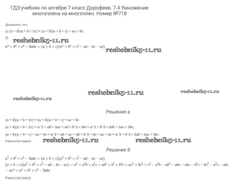 Готовая домашняя работа с ответами по Алгебре за 7 класс Дорофеев, Суворова, Бунимович Учебник Академический школьный учебник Просвещение 2020 ФГОС - Упражнения 718