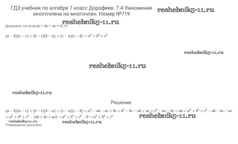 Готовая домашняя работа с ответами по Алгебре за 7 класс Дорофеев, Суворова, Бунимович Учебник Академический школьный учебник Просвещение 2020 ФГОС - Упражнения 719