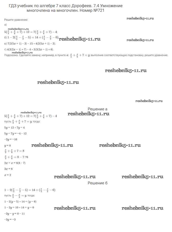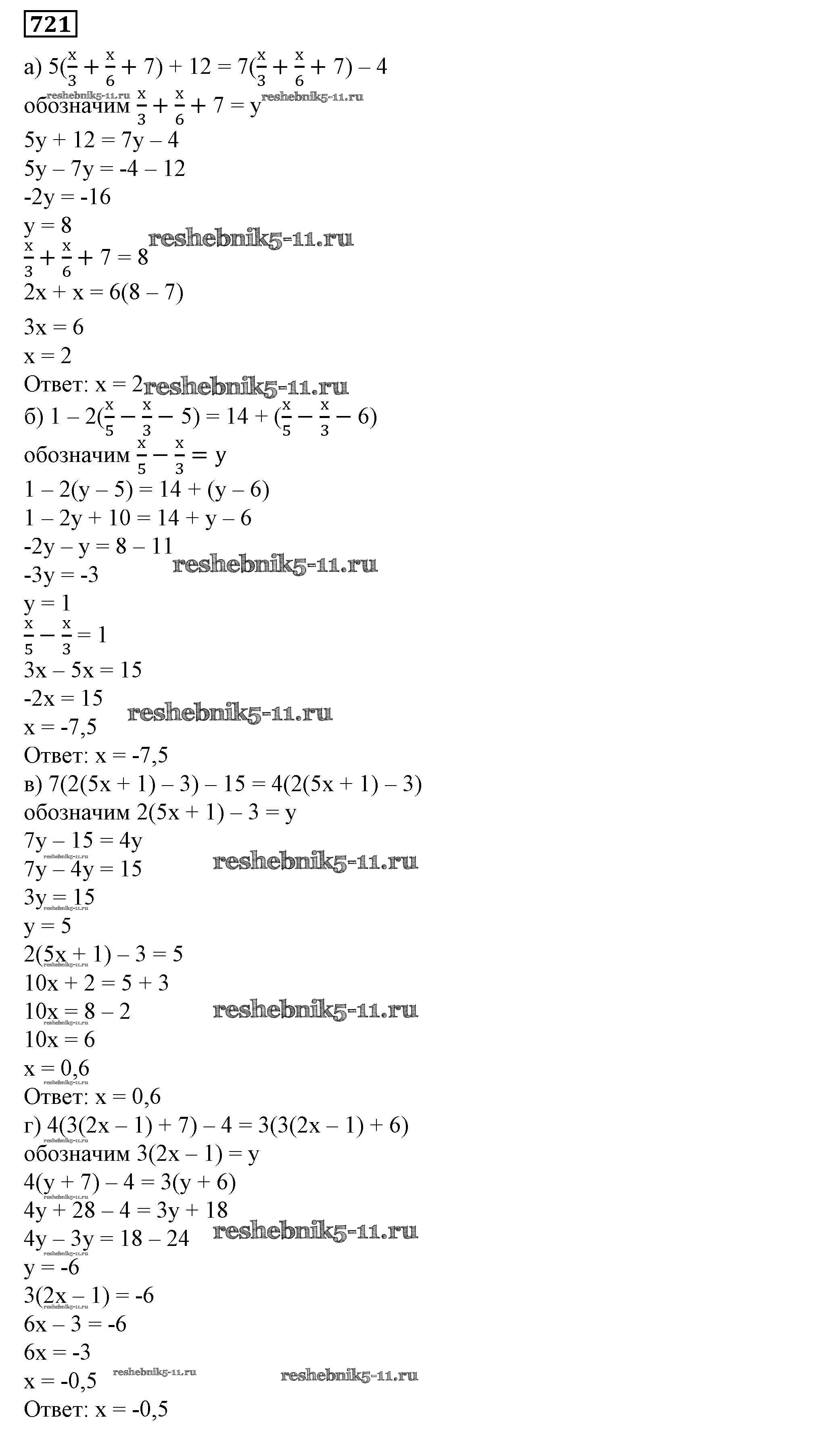 Готовая домашняя работа с ответами по Алгебре за 7 класс Дорофеев, Суворова, Бунимович Учебник Академический школьный учебник Просвещение 2020 ФГОС - Упражнения 721