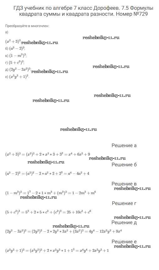 Готовая домашняя работа с ответами по Алгебре за 7 класс Дорофеев, Суворова, Бунимович Учебник Академический школьный учебник Просвещение 2020 ФГОС - Упражнения 729