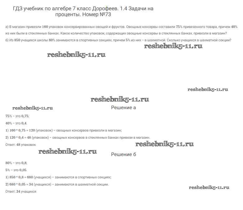 Готовая домашняя работа с ответами по Алгебре за 7 класс Дорофеев, Суворова, Бунимович Учебник Академический школьный учебник Просвещение 2020 ФГОС - Упражнения 73