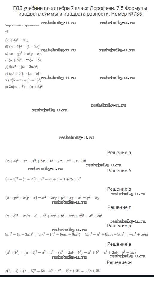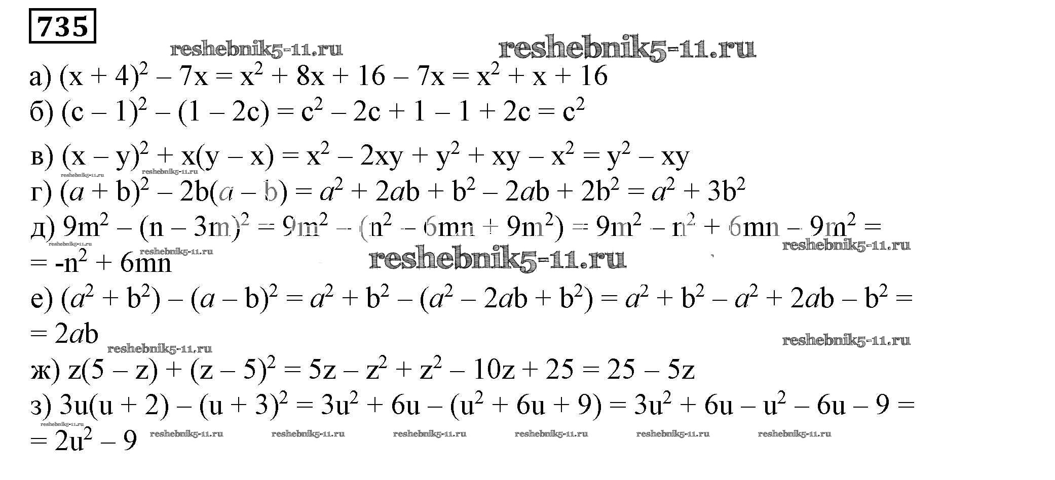 Готовая домашняя работа с ответами по Алгебре за 7 класс Дорофеев, Суворова, Бунимович Учебник Академический школьный учебник Просвещение 2020 ФГОС - Упражнения 735