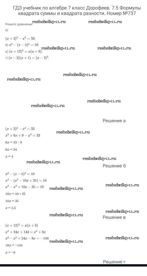 Готовая домашняя работа с ответами по Алгебре за 7 класс Дорофеев, Суворова, Бунимович Учебник Академический школьный учебник Просвещение 2020 ФГОС - Упражнения 737