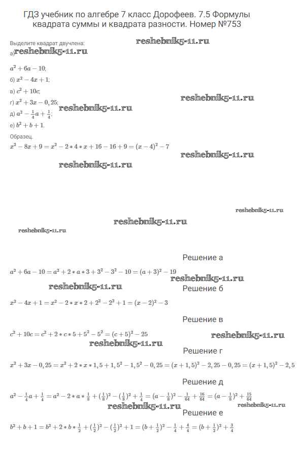 Готовая домашняя работа с ответами по Алгебре за 7 класс Дорофеев, Суворова, Бунимович Учебник Академический школьный учебник Просвещение 2020 ФГОС - Упражнения 753