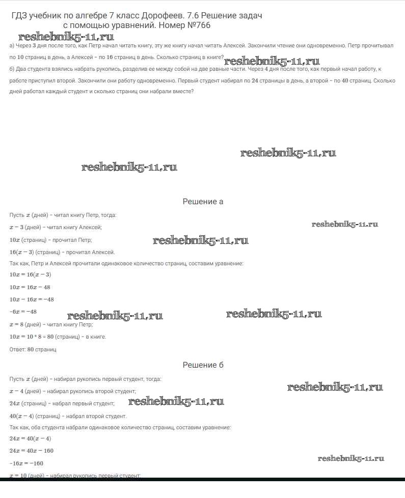Готовая домашняя работа с ответами по Алгебре за 7 класс Дорофеев, Суворова, Бунимович Учебник Академический школьный учебник Просвещение 2020 ФГОС - Упражнения 766