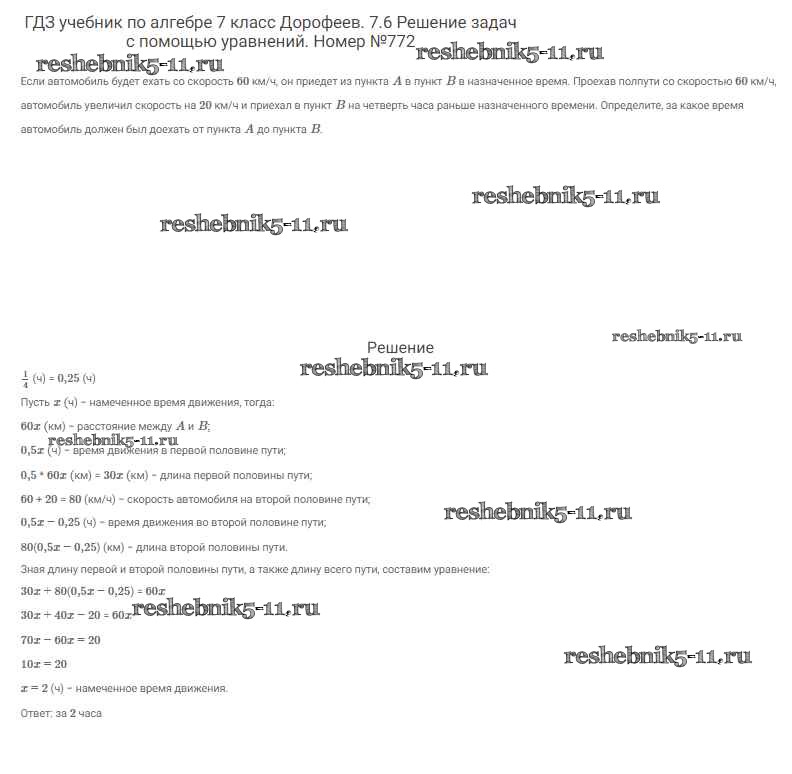 Готовая домашняя работа с ответами по Алгебре за 7 класс Дорофеев, Суворова, Бунимович Учебник Академический школьный учебник Просвещение 2020 ФГОС - Упражнения 772