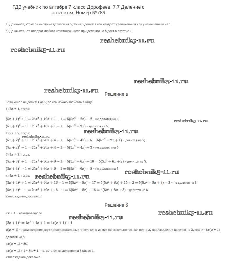 Готовая домашняя работа с ответами по Алгебре за 7 класс Дорофеев, Суворова, Бунимович Учебник Академический школьный учебник Просвещение 2020 ФГОС - Упражнения 789