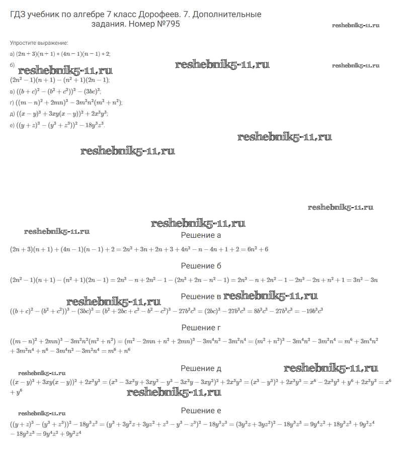 Готовая домашняя работа с ответами по Алгебре за 7 класс Дорофеев, Суворова, Бунимович Учебник Академический школьный учебник Просвещение 2020 ФГОС - Упражнения 795