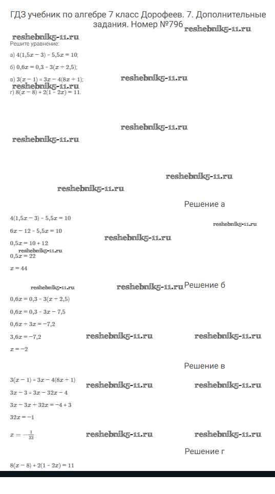 Готовая домашняя работа с ответами по Алгебре за 7 класс Дорофеев, Суворова, Бунимович Учебник Академический школьный учебник Просвещение 2020 ФГОС - Упражнения 796