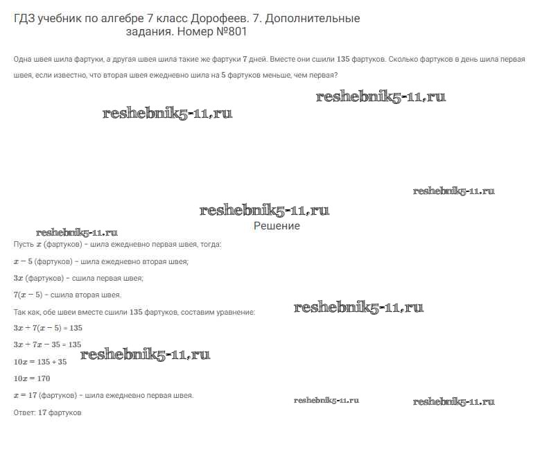Готовая домашняя работа с ответами по Алгебре за 7 класс Дорофеев, Суворова, Бунимович Учебник Академический школьный учебник Просвещение 2020 ФГОС - Упражнения 801