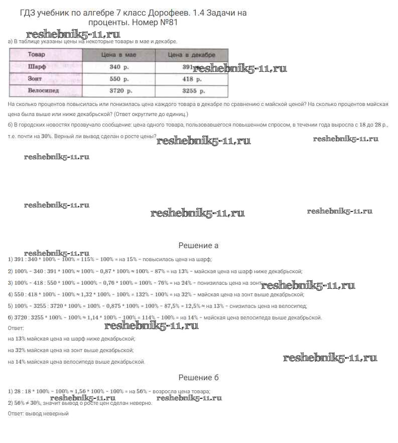 Готовая домашняя работа с ответами по Алгебре за 7 класс Дорофеев, Суворова, Бунимович Учебник Академический школьный учебник Просвещение 2020 ФГОС - Упражнения 81