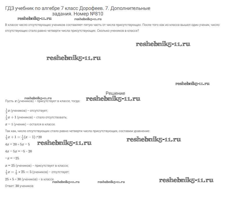 Готовая домашняя работа с ответами по Алгебре за 7 класс Дорофеев, Суворова, Бунимович Учебник Академический школьный учебник Просвещение 2020 ФГОС - Упражнения 810