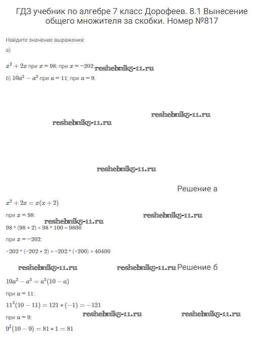Готовая домашняя работа с ответами по Алгебре за 7 класс Дорофеев, Суворова, Бунимович Учебник Академический школьный учебник Просвещение 2020 ФГОС - Упражнения 817