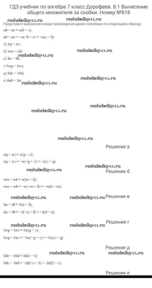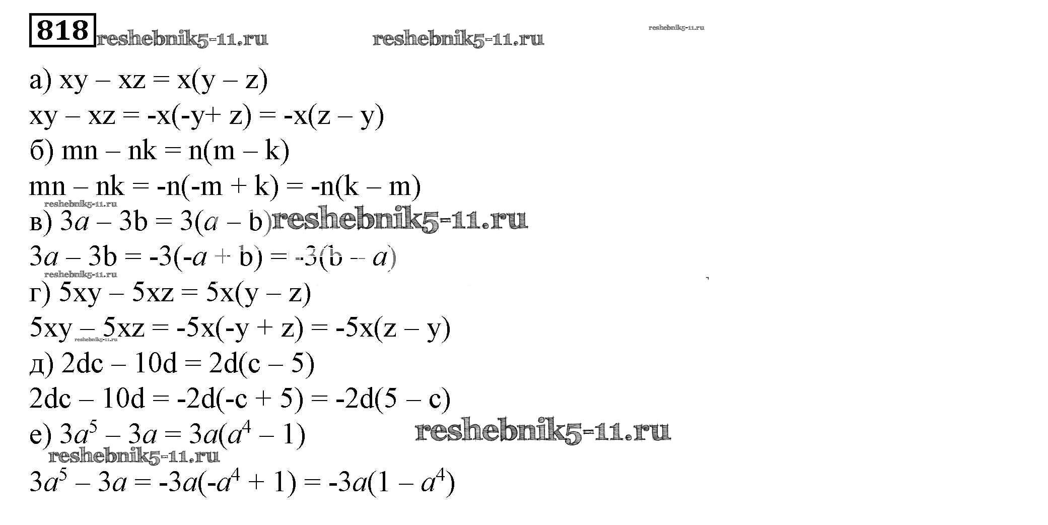 Готовая домашняя работа с ответами по Алгебре за 7 класс Дорофеев, Суворова, Бунимович Учебник Академический школьный учебник Просвещение 2020 ФГОС - Упражнения 818