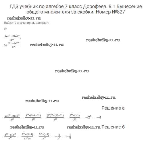 Готовая домашняя работа с ответами по Алгебре за 7 класс Дорофеев, Суворова, Бунимович Учебник Академический школьный учебник Просвещение 2020 ФГОС - Упражнения 827