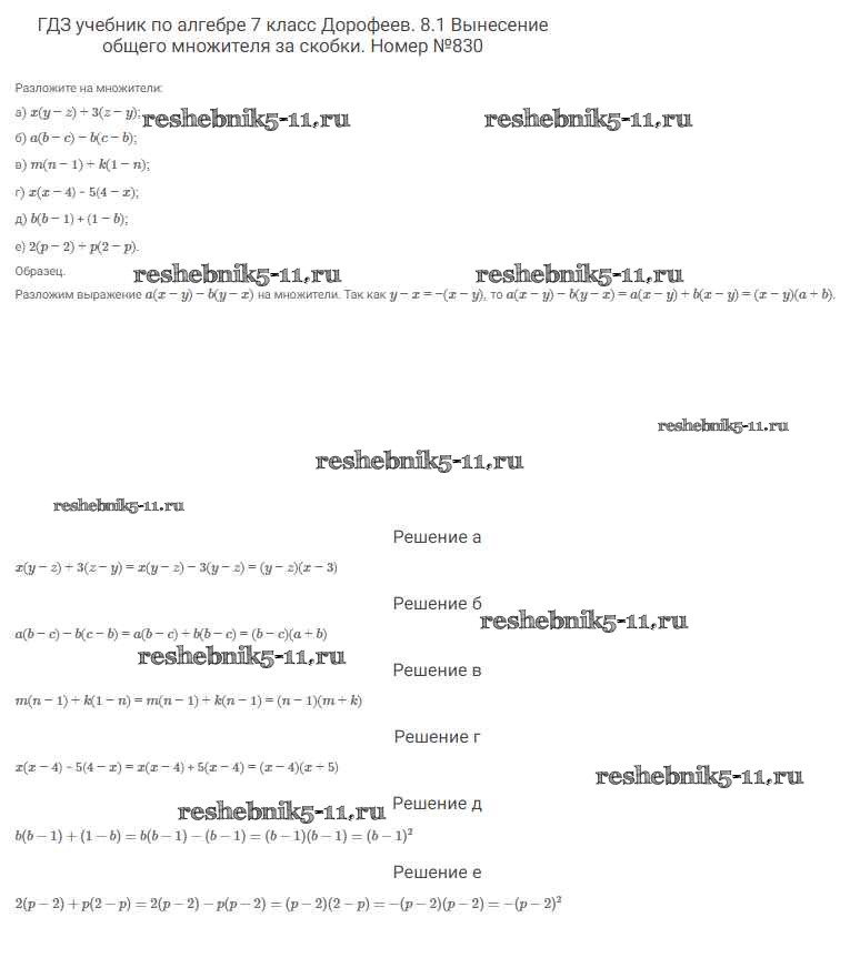 Готовая домашняя работа с ответами по Алгебре за 7 класс Дорофеев, Суворова, Бунимович Учебник Академический школьный учебник Просвещение 2020 ФГОС - Упражнения 830