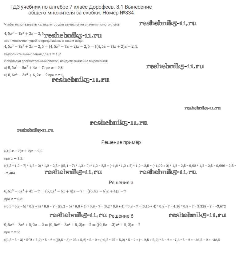 Готовая домашняя работа с ответами по Алгебре за 7 класс Дорофеев, Суворова, Бунимович Учебник Академический школьный учебник Просвещение 2020 ФГОС - Упражнения 834