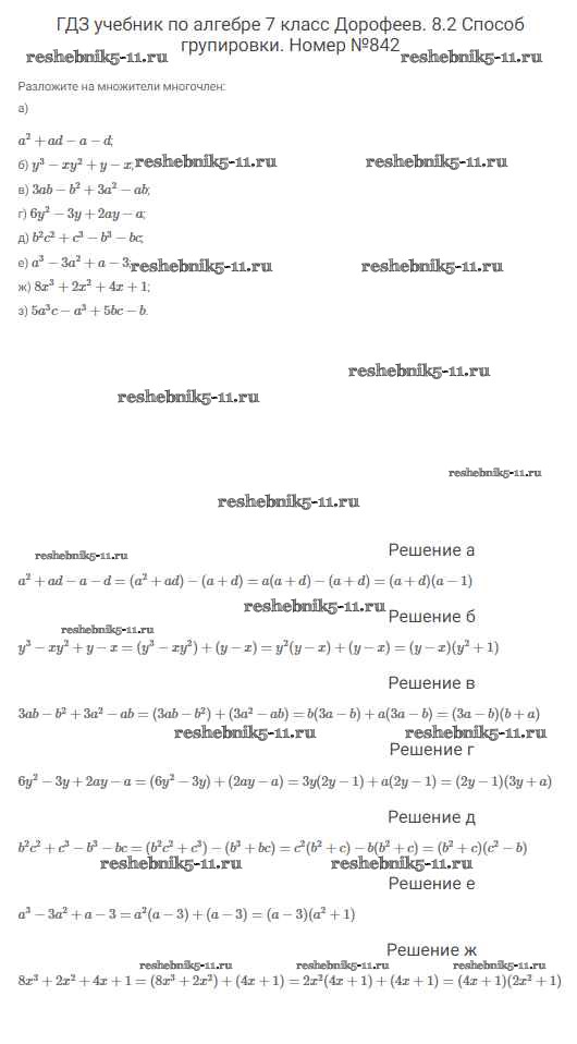 Готовая домашняя работа с ответами по Алгебре за 7 класс Дорофеев, Суворова, Бунимович Учебник Академический школьный учебник Просвещение 2020 ФГОС - Упражнения 842