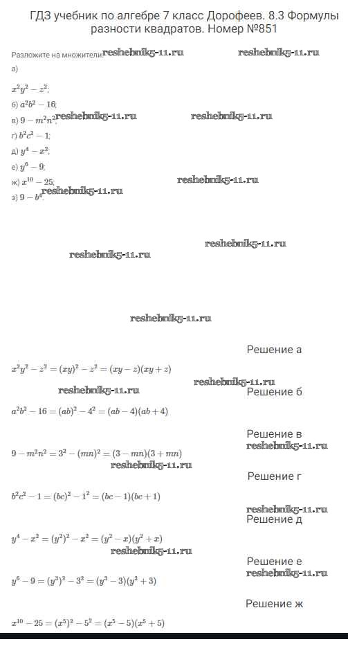 Готовая домашняя работа с ответами по Алгебре за 7 класс Дорофеев, Суворова, Бунимович Учебник Академический школьный учебник Просвещение 2020 ФГОС - Упражнения 851