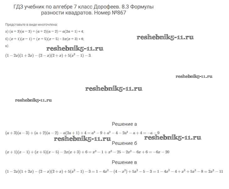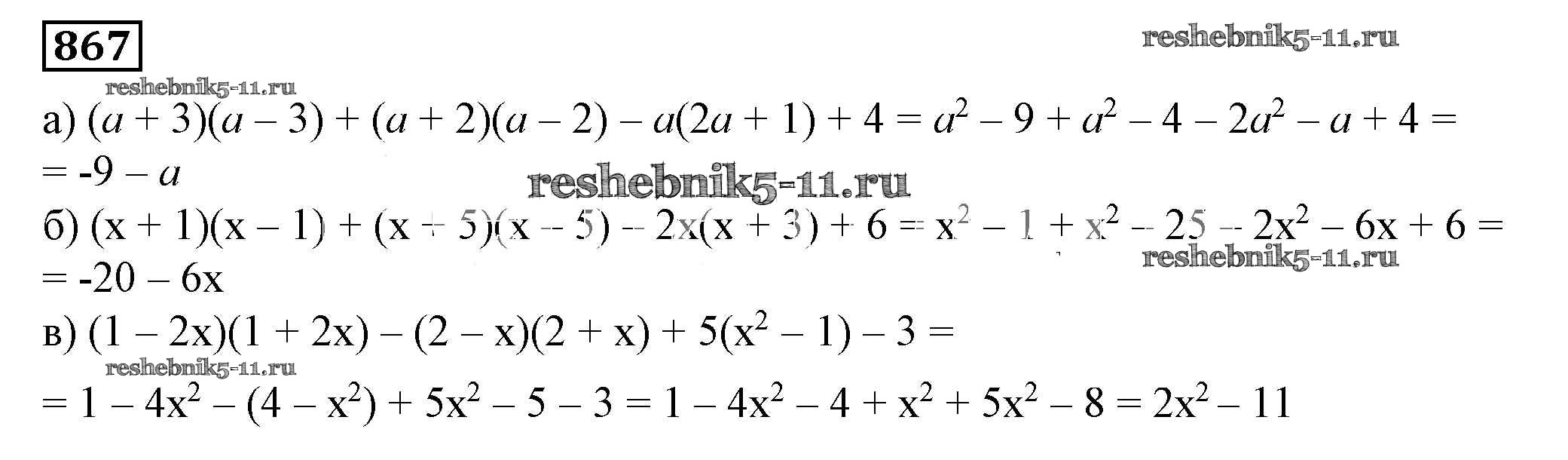 Готовая домашняя работа с ответами по Алгебре за 7 класс Дорофеев, Суворова, Бунимович Учебник Академический школьный учебник Просвещение 2020 ФГОС - Упражнения 867