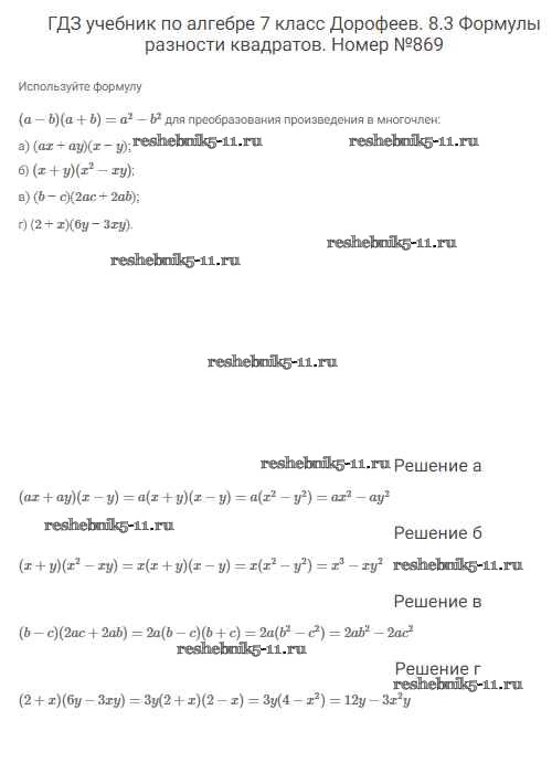 Готовая домашняя работа с ответами по Алгебре за 7 класс Дорофеев, Суворова, Бунимович Учебник Академический школьный учебник Просвещение 2020 ФГОС - Упражнения 869