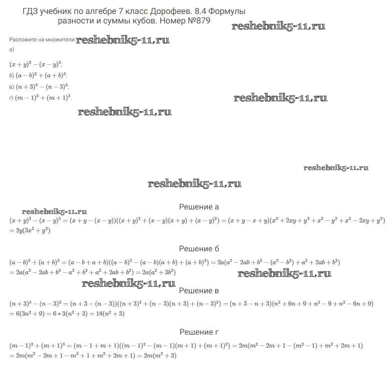 Готовая домашняя работа с ответами по Алгебре за 7 класс Дорофеев, Суворова, Бунимович Учебник Академический школьный учебник Просвещение 2020 ФГОС - Упражнения 879