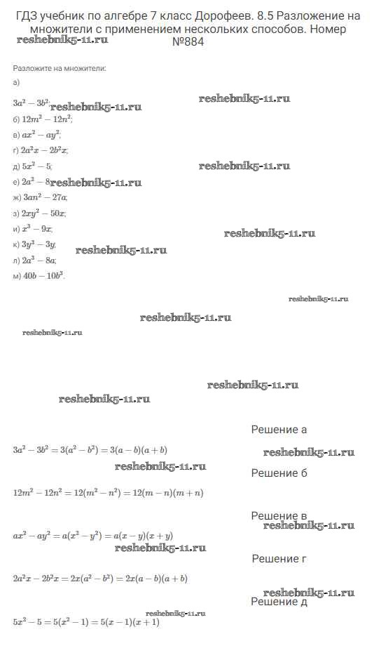 Готовая домашняя работа с ответами по Алгебре за 7 класс Дорофеев, Суворова, Бунимович Учебник Академический школьный учебник Просвещение 2020 ФГОС - Упражнения 884