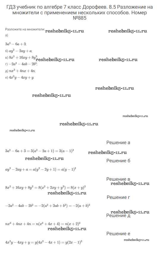Готовая домашняя работа с ответами по Алгебре за 7 класс Дорофеев, Суворова, Бунимович Учебник Академический школьный учебник Просвещение 2020 ФГОС - Упражнения 885