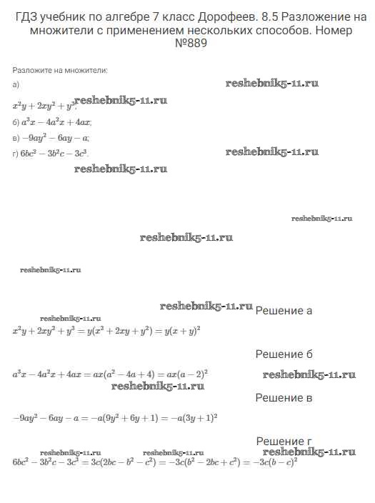 Готовая домашняя работа с ответами по Алгебре за 7 класс Дорофеев, Суворова, Бунимович Учебник Академический школьный учебник Просвещение 2020 ФГОС - Упражнения 889