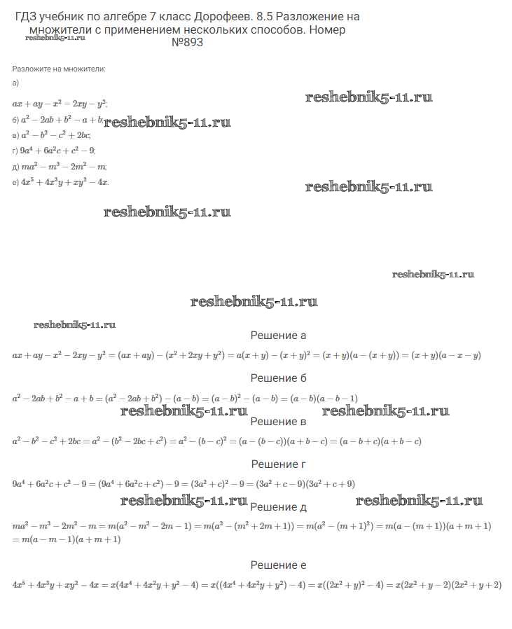 Готовая домашняя работа с ответами по Алгебре за 7 класс Дорофеев, Суворова, Бунимович Учебник Академический школьный учебник Просвещение 2020 ФГОС - Упражнения 893