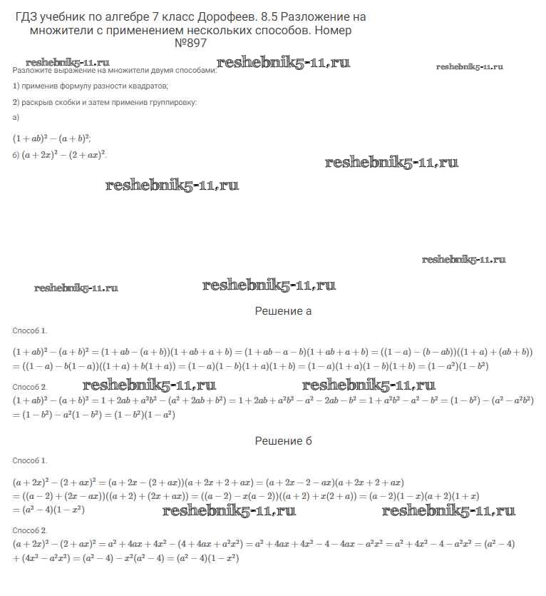Готовая домашняя работа с ответами по Алгебре за 7 класс Дорофеев, Суворова, Бунимович Учебник Академический школьный учебник Просвещение 2020 ФГОС - Упражнения 897