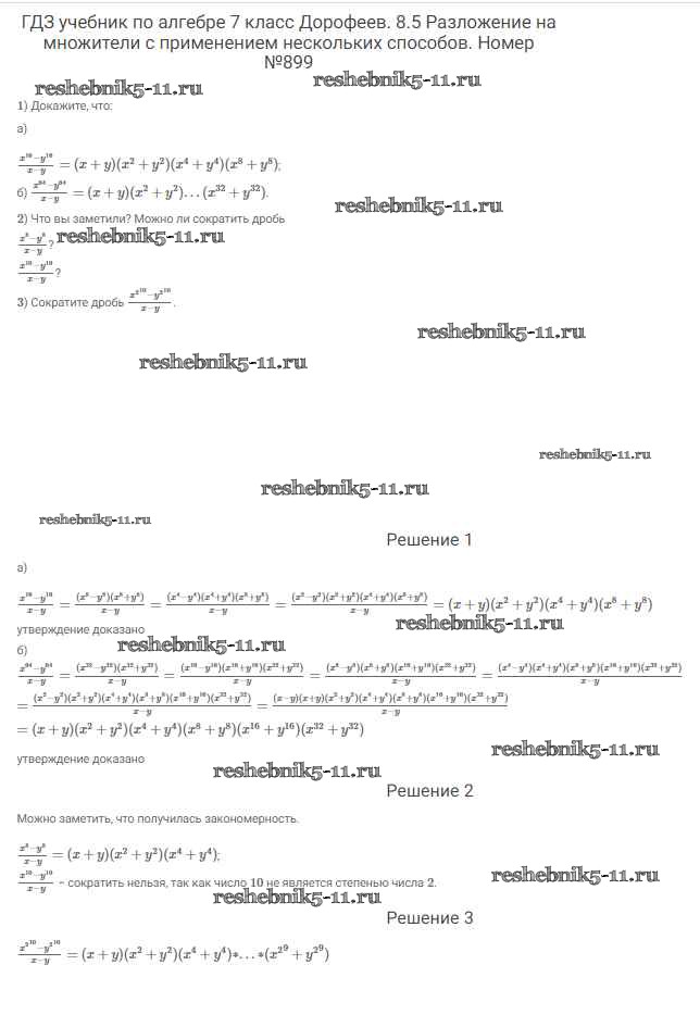 Готовая домашняя работа с ответами по Алгебре за 7 класс Дорофеев, Суворова, Бунимович Учебник Академический школьный учебник Просвещение 2020 ФГОС - Упражнения 899
