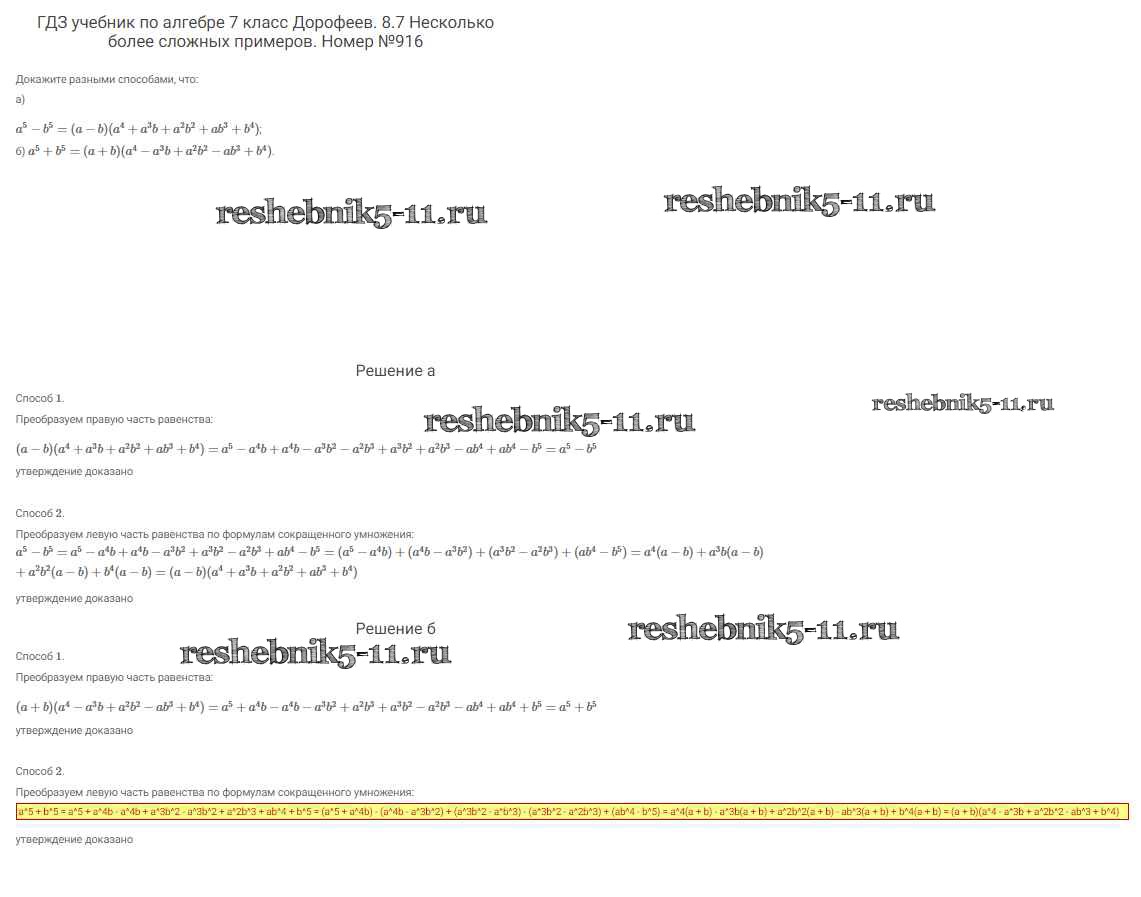 Готовая домашняя работа с ответами по Алгебре за 7 класс Дорофеев, Суворова, Бунимович Учебник Академический школьный учебник Просвещение 2020 ФГОС - Упражнения 916