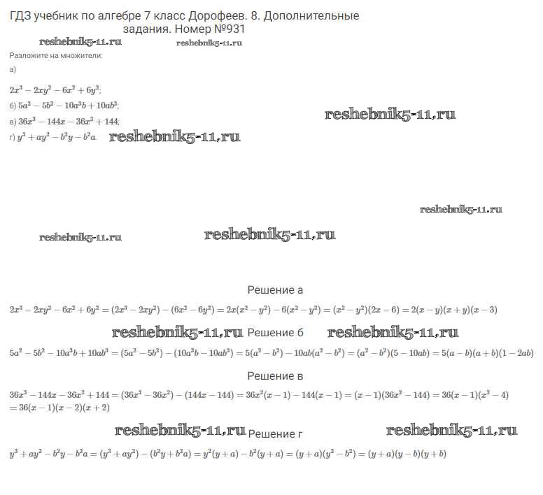 Готовая домашняя работа с ответами по Алгебре за 7 класс Дорофеев, Суворова, Бунимович Учебник Академический школьный учебник Просвещение 2020 ФГОС - Упражнения 931
