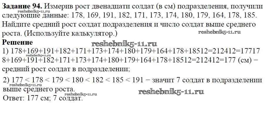 Готовая домашняя работа с ответами по Алгебре за 7 класс Дорофеев, Суворова, Бунимович Учебник Академический школьный учебник Просвещение 2020 ФГОС - Упражнения 94