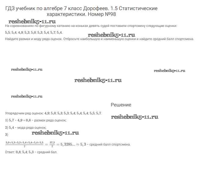 Готовая домашняя работа с ответами по Алгебре за 7 класс Дорофеев, Суворова, Бунимович Учебник Академический школьный учебник Просвещение 2020 ФГОС - Упражнения 98