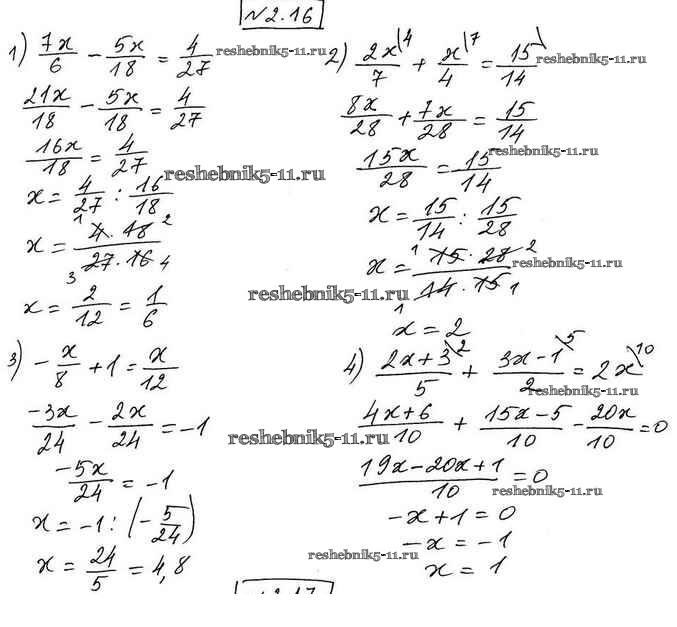 Готовая домашняя работа с ответами по Алгебре за 7 класс Мерзляк, Поляков Учебник Алгоритм успеха Углубленный уровень Вентана-граф 2019 ФГОС - §2. Линейное уравнение с одной переменной 2.16