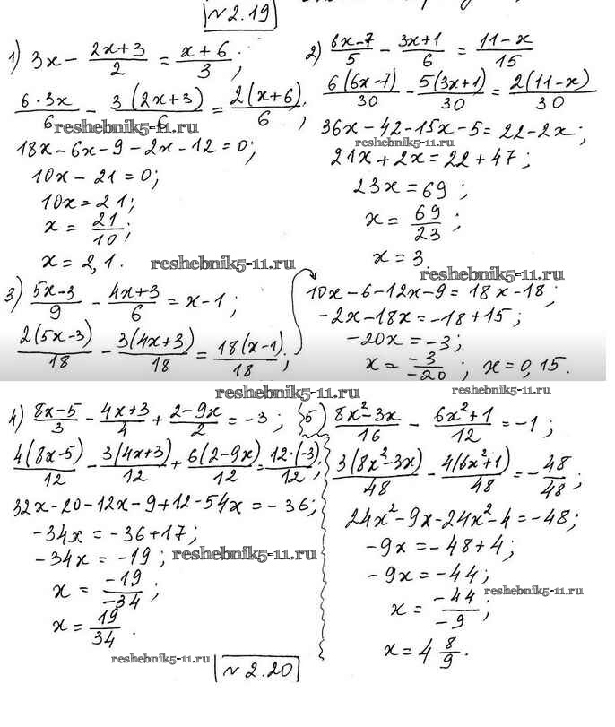 Готовая домашняя работа с ответами по Алгебре за 7 класс Мерзляк, Поляков Учебник Алгоритм успеха Углубленный уровень Вентана-граф 2019 ФГОС - §2. Линейное уравнение с одной переменной 2.19