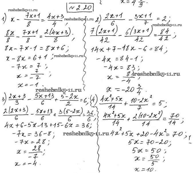 Готовая домашняя работа с ответами по Алгебре за 7 класс Мерзляк, Поляков Учебник Алгоритм успеха Углубленный уровень Вентана-граф 2019 ФГОС - §2. Линейное уравнение с одной переменной 2.20