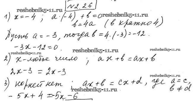 Готовая домашняя работа с ответами по Алгебре за 7 класс Мерзляк, Поляков Учебник Алгоритм успеха Углубленный уровень Вентана-граф 2019 ФГОС - §2. Линейное уравнение с одной переменной 2.26