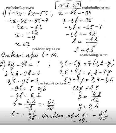 Готовая домашняя работа с ответами по Алгебре за 7 класс Мерзляк, Поляков Учебник Алгоритм успеха Углубленный уровень Вентана-граф 2019 ФГОС - §2. Линейное уравнение с одной переменной 2.30