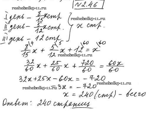 Готовая домашняя работа с ответами по Алгебре за 7 класс Мерзляк, Поляков Учебник Алгоритм успеха Углубленный уровень Вентана-граф 2019 ФГОС - §2. Линейное уравнение с одной переменной 2.46
