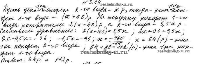 Готовая домашняя работа с ответами по Алгебре за 7 класс Мерзляк, Поляков Учебник Алгоритм успеха Углубленный уровень Вентана-граф 2019 ФГОС - §3. Решение задач с помощью уравнений 3.14